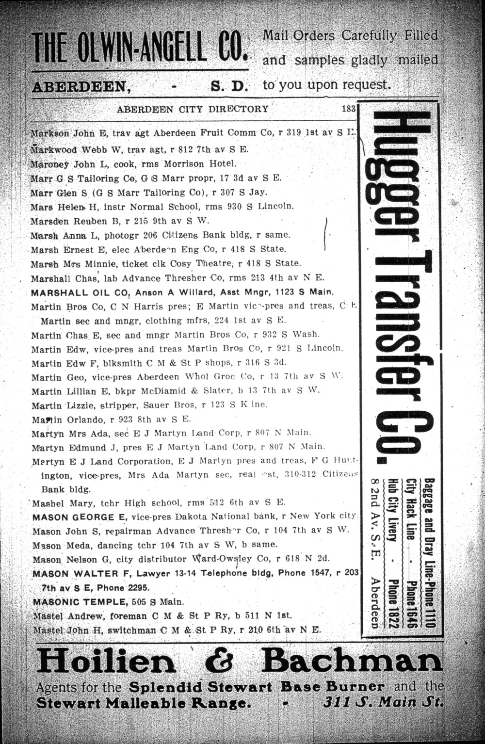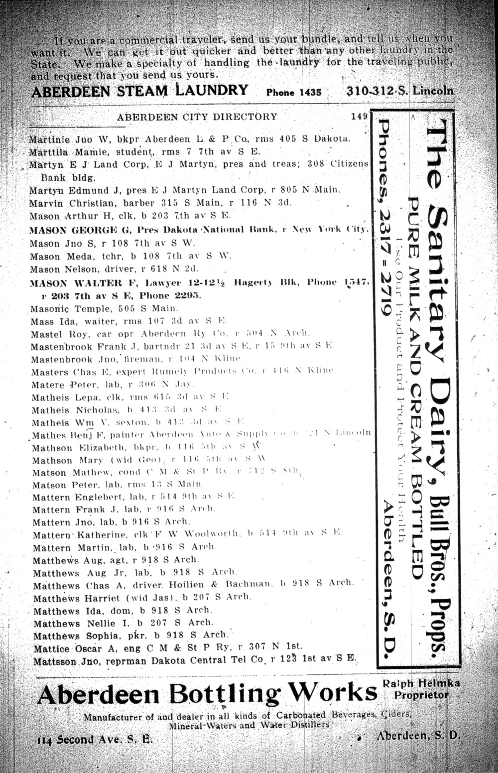 35. Edmund Jonathan Martyn appeared in Aberdeen, Brown, South Dakota, United States City Directory for 1913 115 Listings for Martyn E J Land Corp and Martyn, Edmund J.