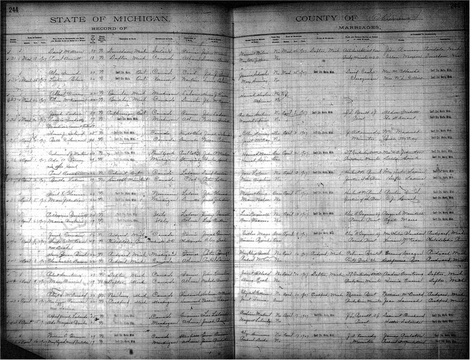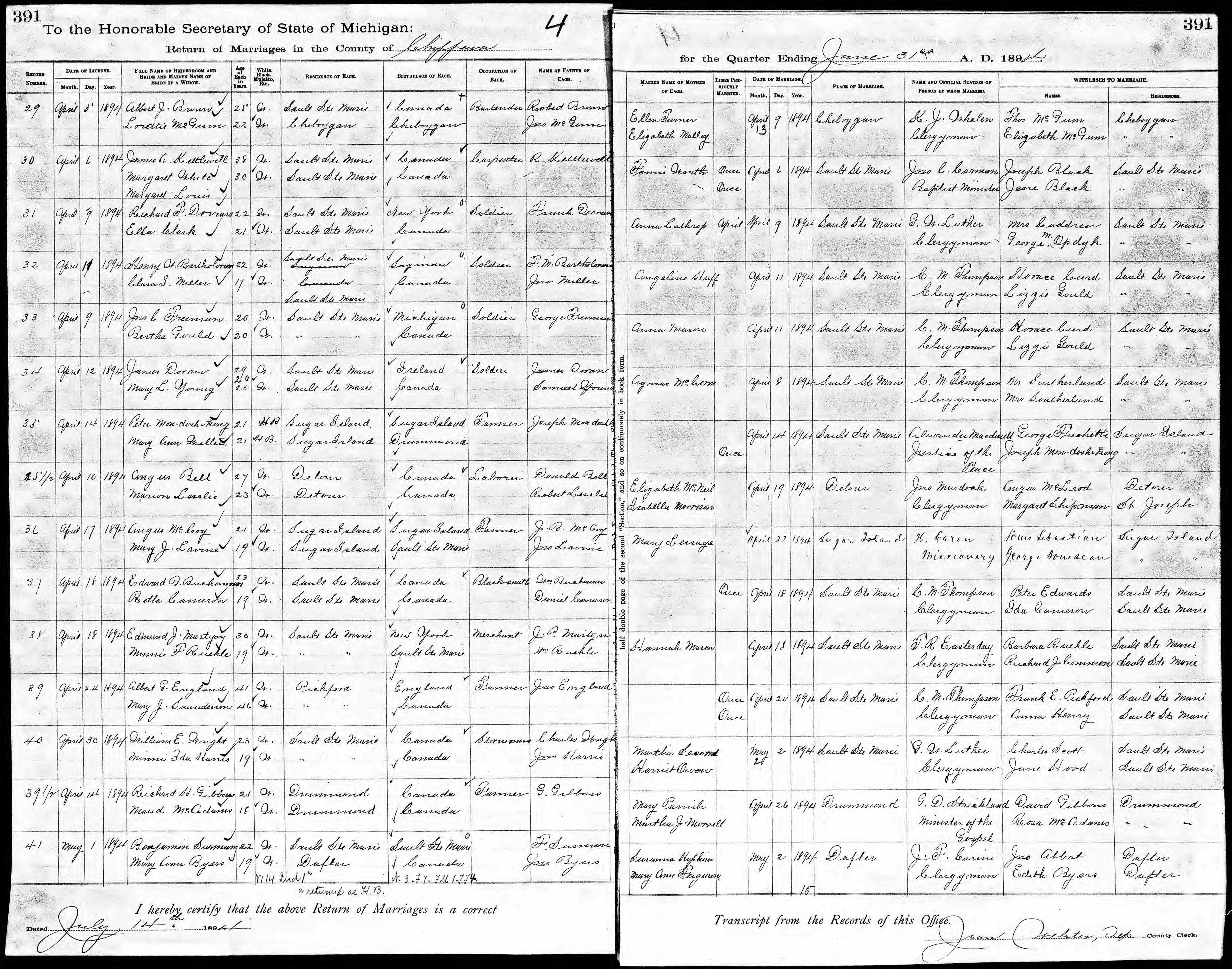 1. Marriage Record: Edmund Martyn and Ada Speck, 2 April 1907, Sault Ste. Marie, Chippewa, Michigan, United States.