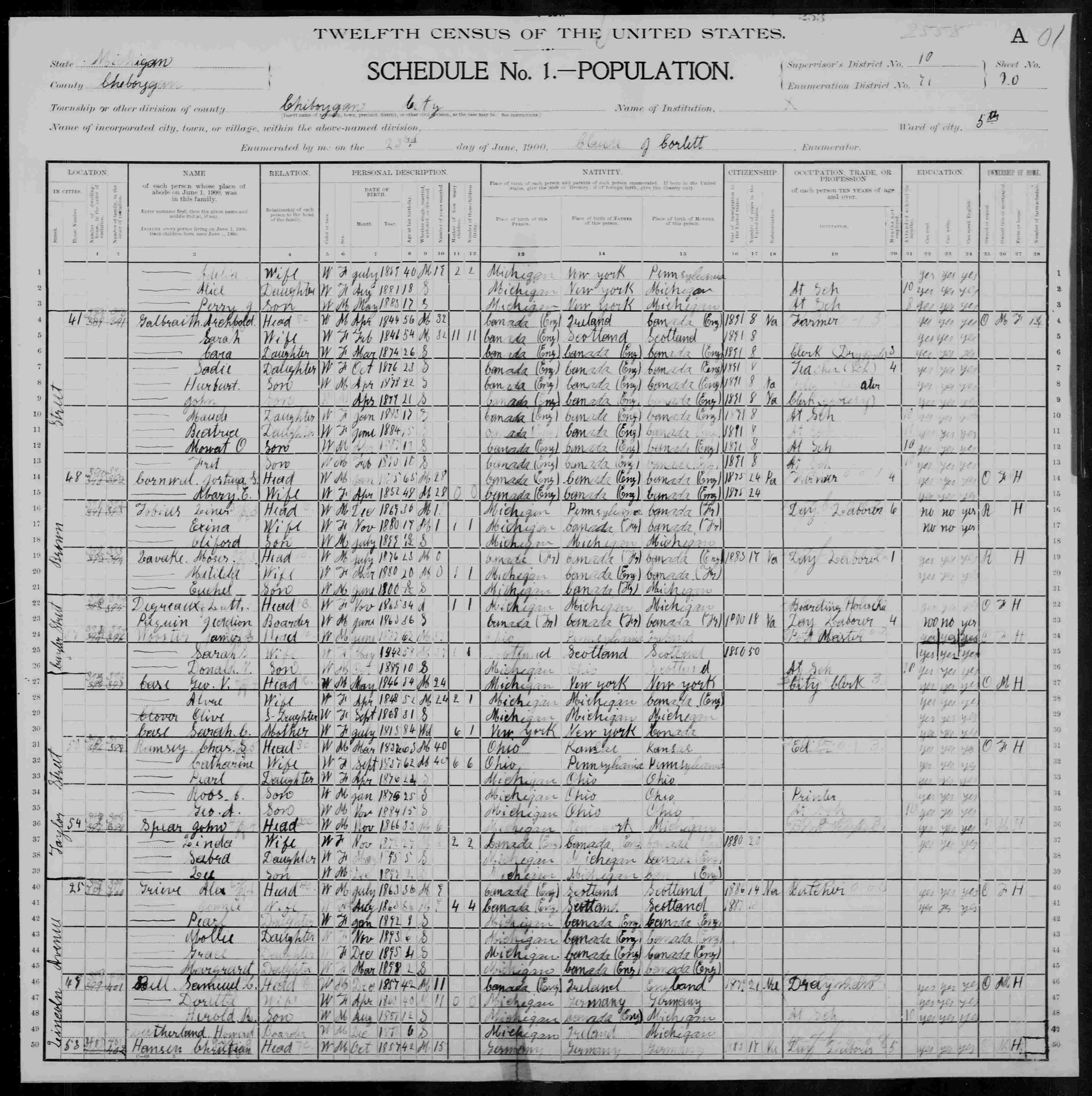 4. She appeared in the household of Alexander F. GRIEVE in the 1910 United States census on 28 April 1910 in Rudyard, Chippewa, Michigan, United States. 1910_MI_Chippewa_Rudyard_24_05a. This event was shared from Alexander F. GRIEVE who also shared it with Agnes Pearl GRIEVE (1892-1983), Fredrick Robert Alexander GRIEVE (1900-1986), Grace L. GRIEVE (1895-1990), Jane A. MITCHELL (1860-1920), Katherine Elizabeth GRIEVE (1902-1963), Margaret GRIEVE (1898-1994), and Mollie J. GRIEVE (1893-1991). 5. Grace was an occupant at the residence of Alexander F. GRIEVE on 28 April 1910 in Rudyard, Chippewa, Michigan, United States. 11 11 This event was shared from Alexander F. GRIEVE who also shared it with Agnes Pearl GRIEVE (1892-1983), Fredrick Robert Alexander GRIEVE (1900-1986), Grace L. GRIEVE (1895-1990), Jane A. MITCHELL (1860-1920), Katherine Elizabeth GRIEVE (1902-1963), Margaret GRIEVE (1898-1994), and Mollie J. GRIEVE (1893-1991).