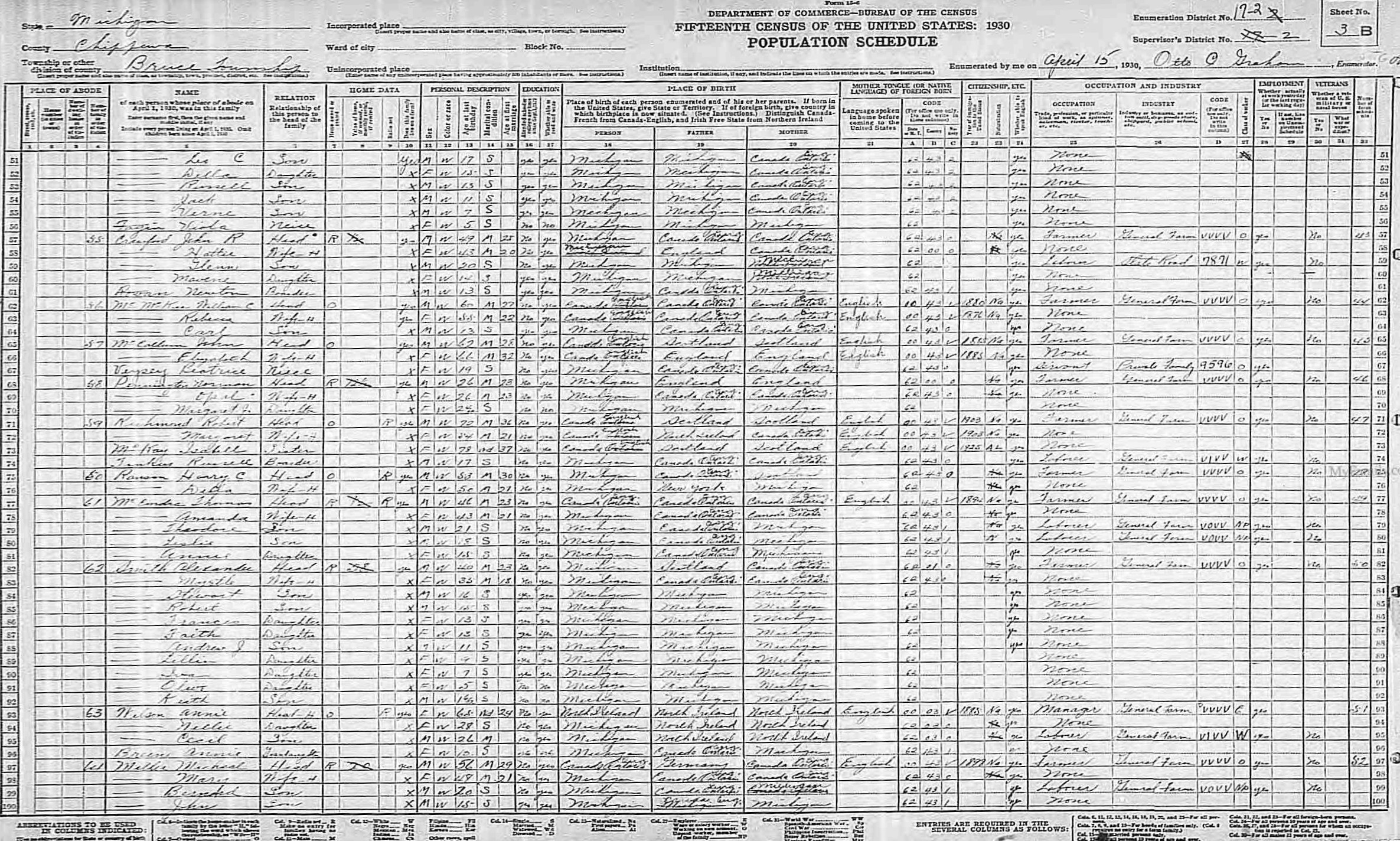 6. He appeared on the 1930 United States census on 15 April 1930 in Bruce Township, Chippewa, Michigan, United States. 1930_USA_MI_Chippewa_17-2_2_03b_Bruce 7. He had a residence on 21 March 1935 in Pickford, Chippewa, Michigan, United States. According to the obituary of his father, Charles Pennington.