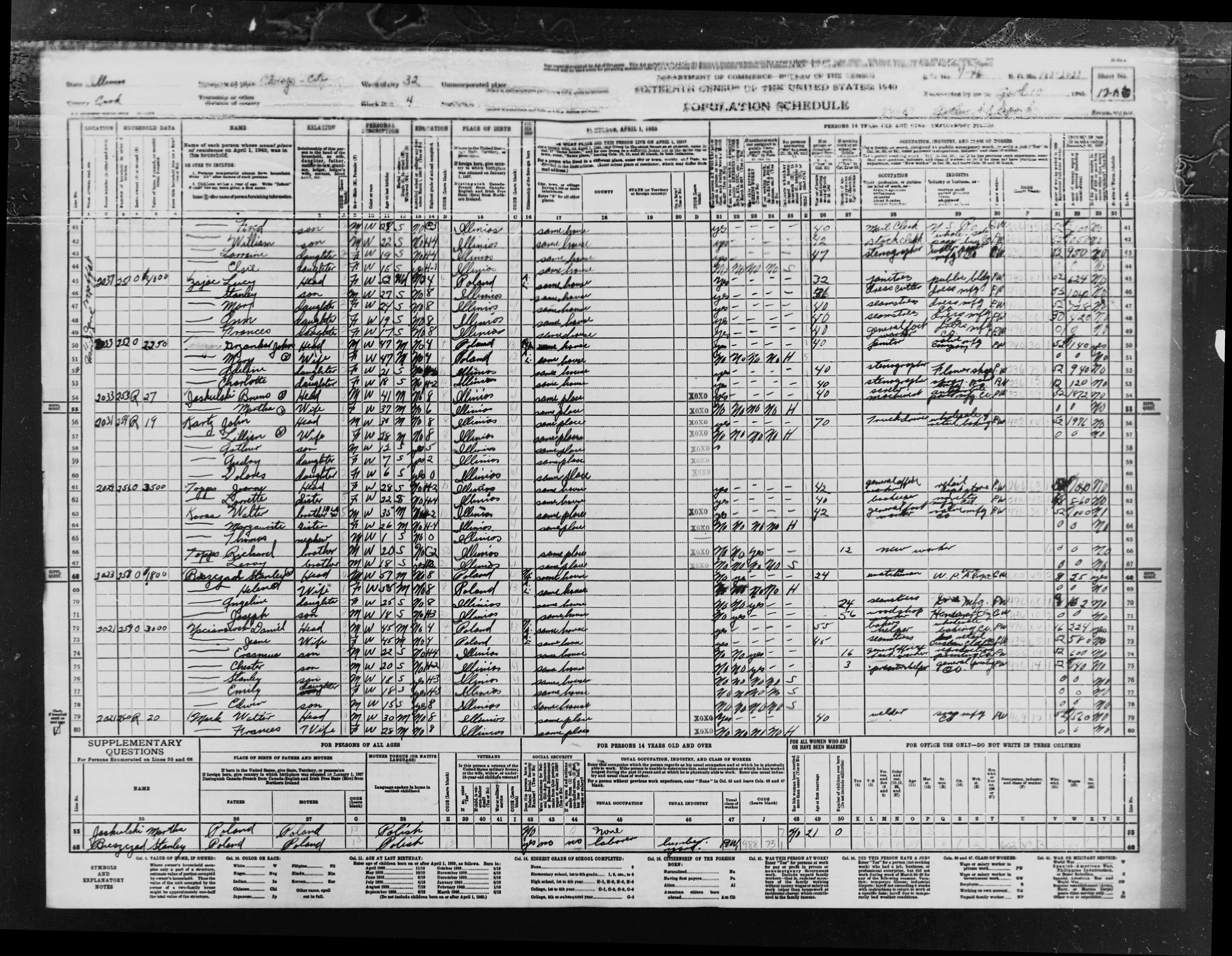 2. Stanley appeared in the household of Joseph ZAJAC in the 1930 United States census on 28 April 1930 in Chicago, Cook, Illinois, United States. This event was shared from Joseph ZAJAC who also shared it with Albert ZAJAC, Frances Elizabeth ZAJAC (1923-), John Paul ZAJAC (1915-), Louise DYLAG (1888-), Mary Agatha ZAJAC (1917-), and Stanley Albert ZAJAC (1913-1991). 3. He was an occupant at the residence of Joseph ZAJAC on 28 April 1930 in Chicago, Cook, Illinois, United States: 2037 Greenwich Street. This event was shared from Joseph ZAJAC who also shared it with Ann ZAJAC (1921-), Frances Elizabeth ZAJAC (1923-), John Paul ZAJAC (1915-), Louise DYLAG (1888-), Mary Agatha ZAJAC (1917-), and Stanley Albert ZAJAC (1913-1991). 4. Stanley was an occupant at the residence of Louise DYLAG in 1935 in Chicago, Cook, Illinois, United States: Same House. 976 976 Based on the 1940 Census. This event was shared from Louise DYLAG who also shared it with Ann ZAJAC (1921-), Frances Elizabeth ZAJAC (1923-), Mary Agatha ZAJAC (1917-), and Stanley Albert ZAJAC (1913-1991).