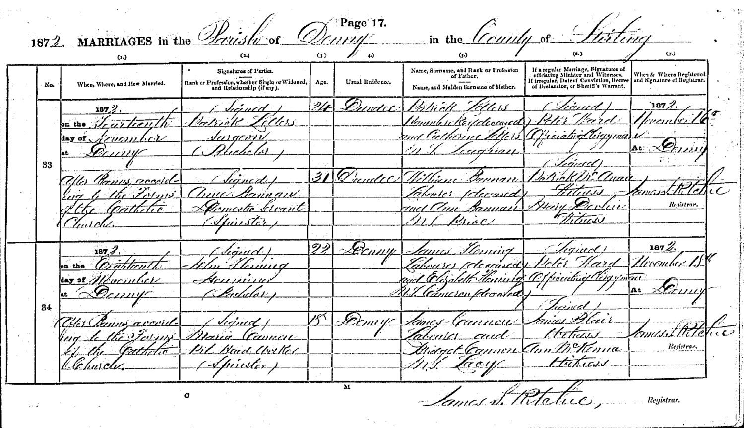 1. Marriage Record: 18 November 1872, Altamullan, , Tyrone, Northern Ireland.