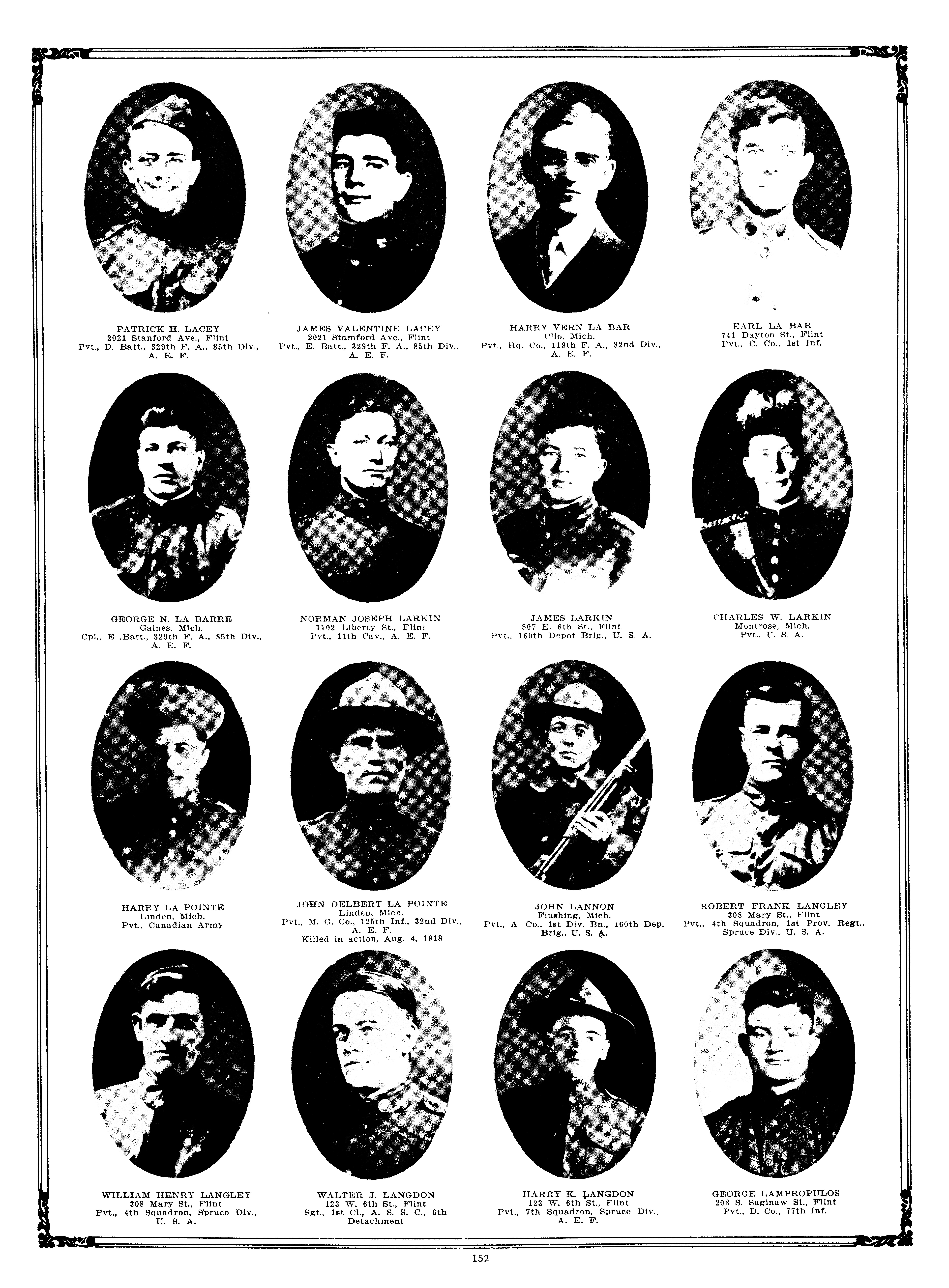 6. He was honored for WWI Genesee County Honor Roll in 1920 in Flint, Genesee, Michigan, United States.